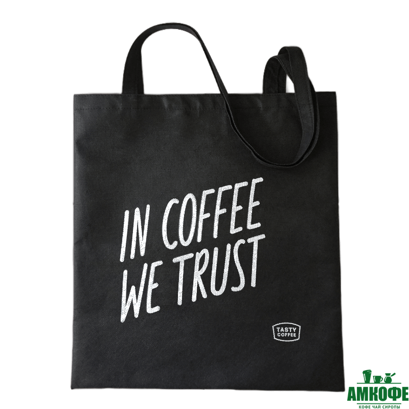 Сумка-шоппер от Tasty Coffee с надписью IN COFFEE WE TRUST. Выполнена из спанбонда.