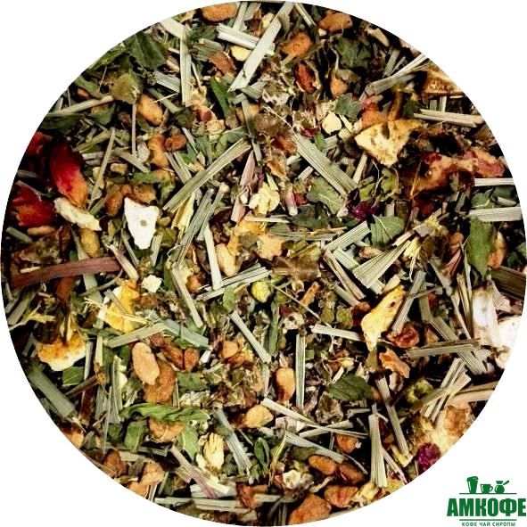 Чай «Травяной с имбирём» состоит из смеси имбиря, травы лимонника, лакричника, ромашки, корицы, чёрного перца, вербеновых листьев и лепестков роз. Этот чай прекрасно улучшает пищеварение и устраняет токсины.